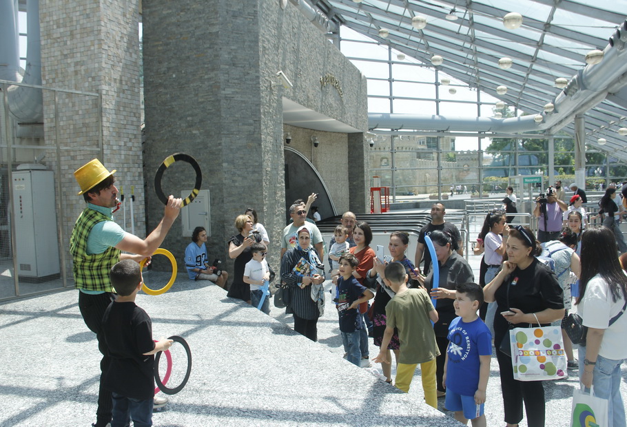 Tədbirin ikinci hissəsində müxtəlif uşaq tamaşalarının personajları, xüsusi velotəkərlərdə hərəkət edən jonqlyorun oyunları balacaların diqqətini çəkib.