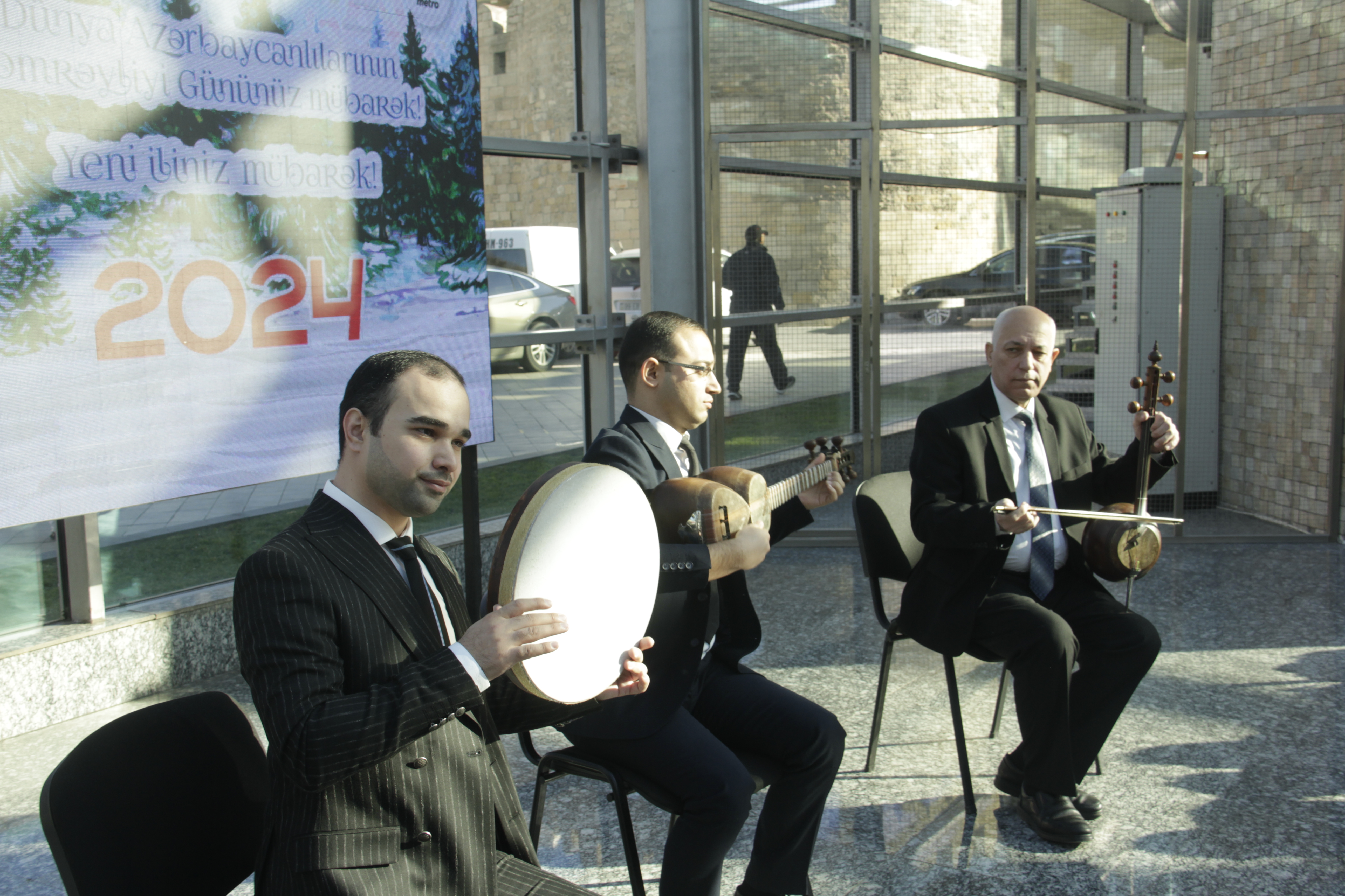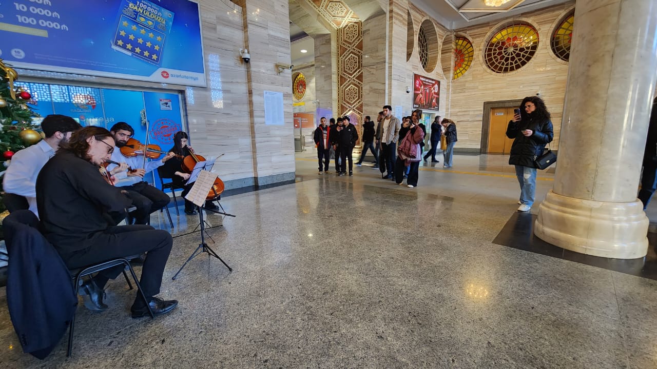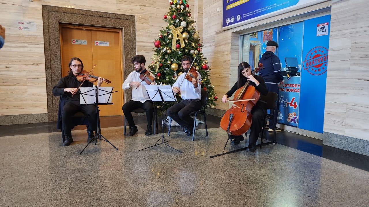 Dünya Azərbaycanlılarının Həmrəyliyi Günü və Yeni ilin gəlişi münasibətilə Bakı metropoliteni sərnişinlərə xoş ovqat bəxş edən layihələr silsiləsindən Azərbaycan Milli Konservatoriyasının və Bakı Musiqi Akademiyasının məzunlarından ibarət simli kvartetin və milli muğam üçlüyünün konsertləri canlı təqdim olunub.