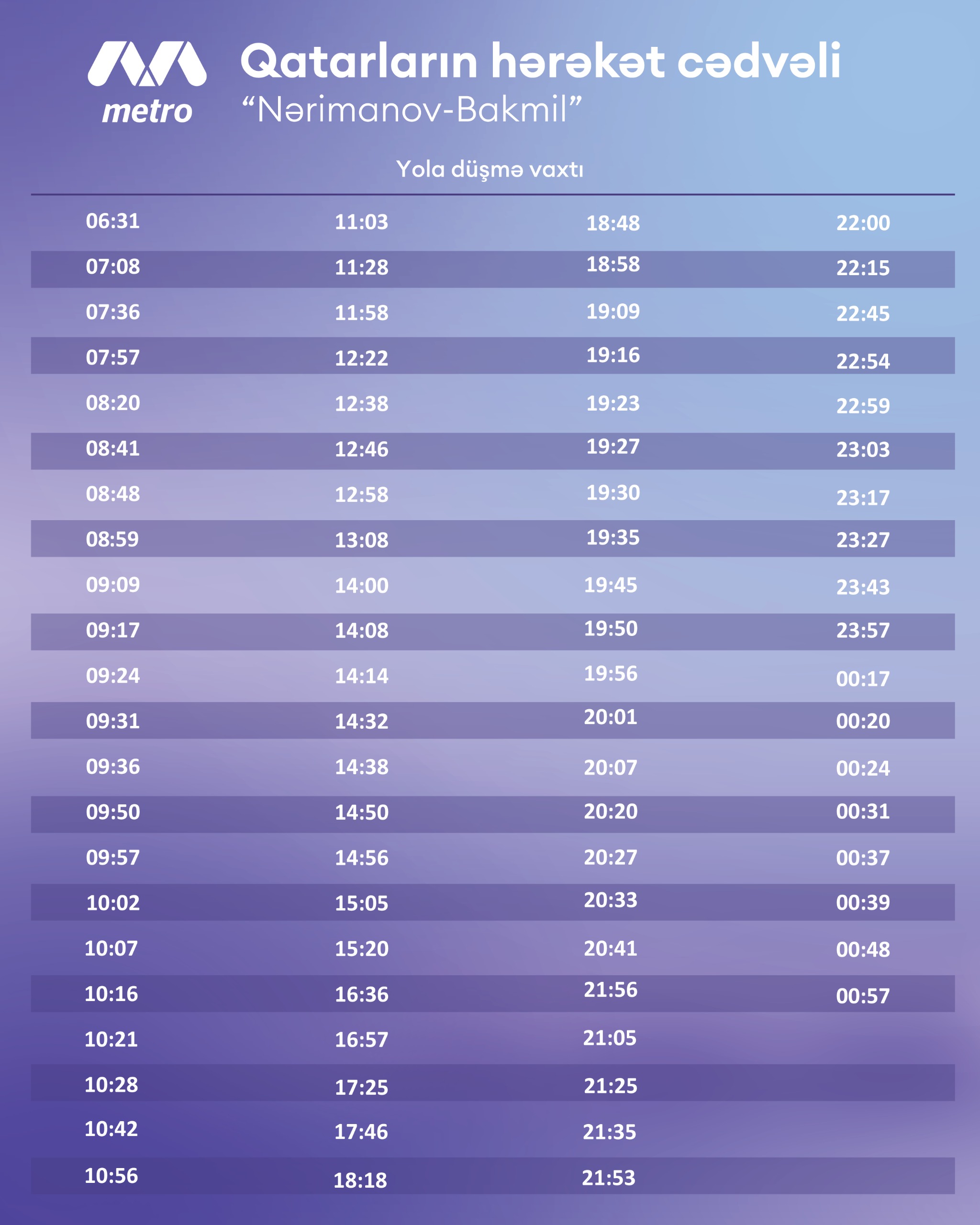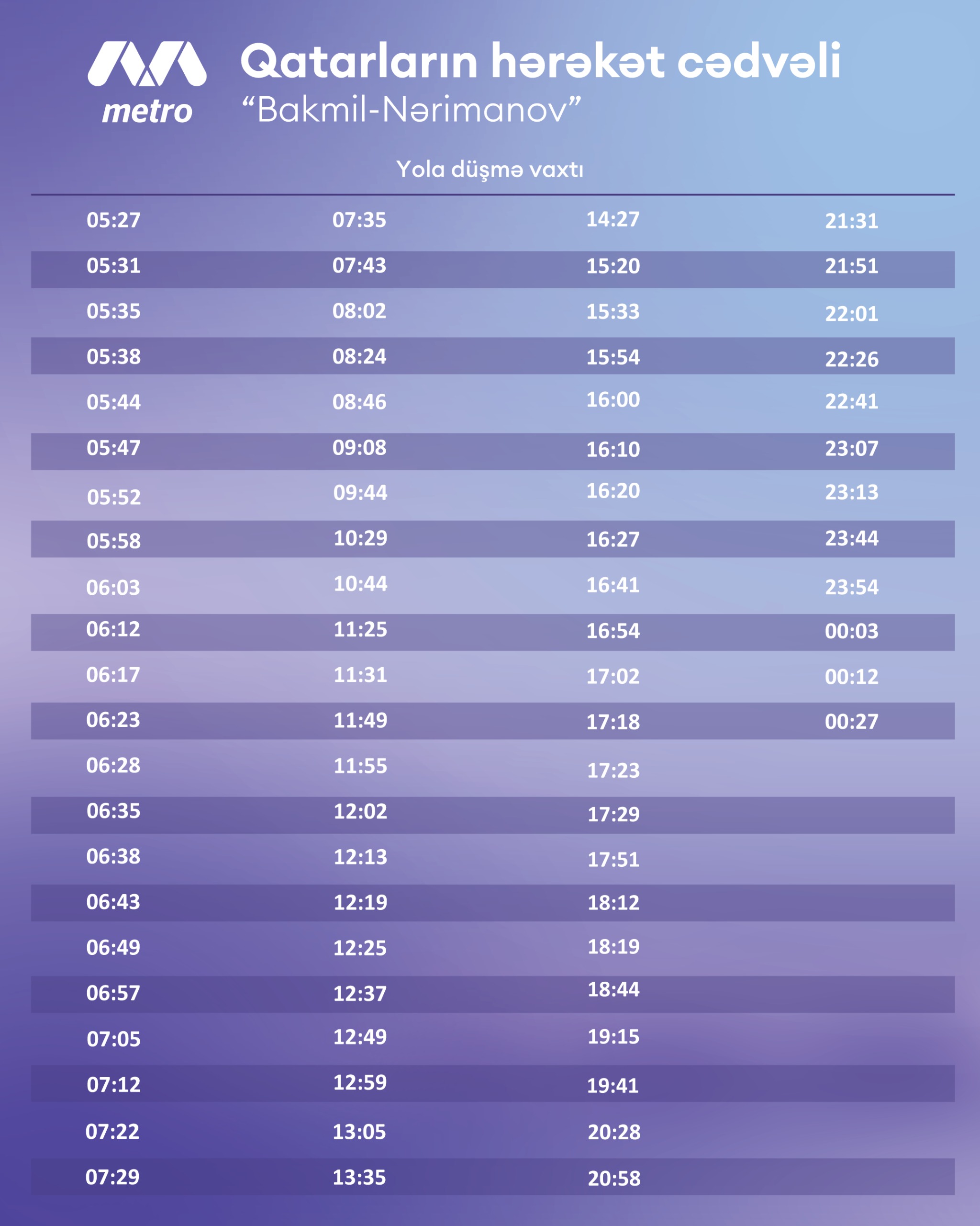 Work Schedule of Baku Metro on Holiday Days